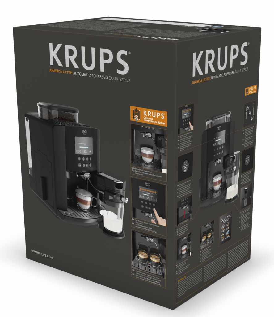 Espressorul automat Krups Arabica Latte oferă cea mai ușoară modalitate de a te bucura de o cafea perfectă, plică de savoare și aromă chiar în confortul locuinței tale.