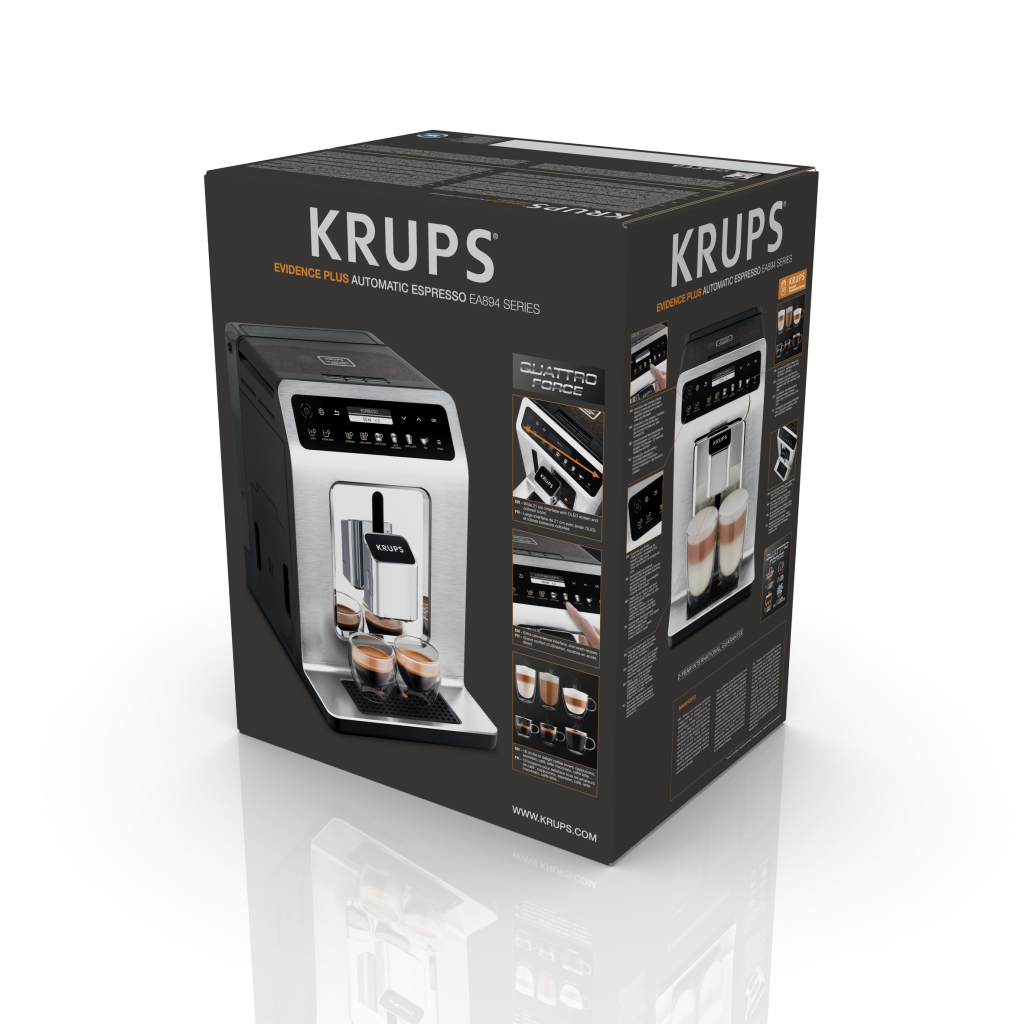 Datorită sistemului Krups Quattro Force savurezi preparate pe bază de cafea sau ceai care fac diferența, iar designul modern face ca espressorul automat Evidence Plus să se potrivească în orice bucătărie.